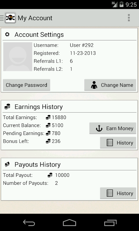 - Kiểm tra tài khoản : vào menu chọn My Account, ở đây các bạn có thể thay đổi password, đổi tên, thông tin tiền kiếm được.